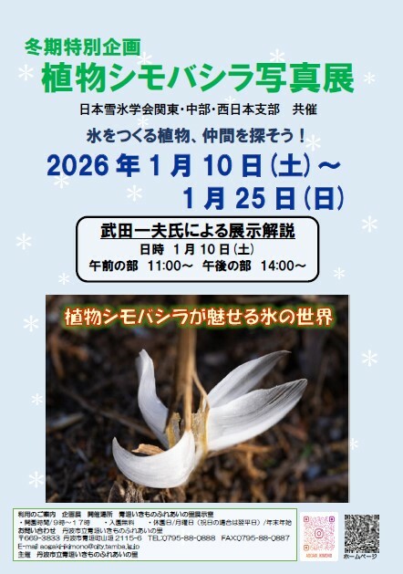 冬の寒い朝、地面でみる霜柱のように茎から氷をつくる植物として知られている「シモバシラ」の写真を展示します。