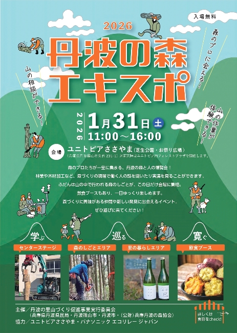 「丹波の森エキスポ2026」は、林業や木材加工など、森づくりに関わるプロが大集合!