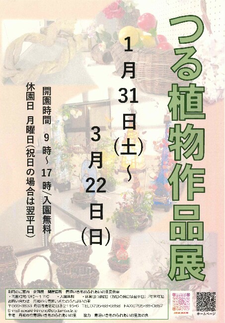 つる工芸の愛好家や一般の方から出展していただいたつる植物で作った作品を展示しています。