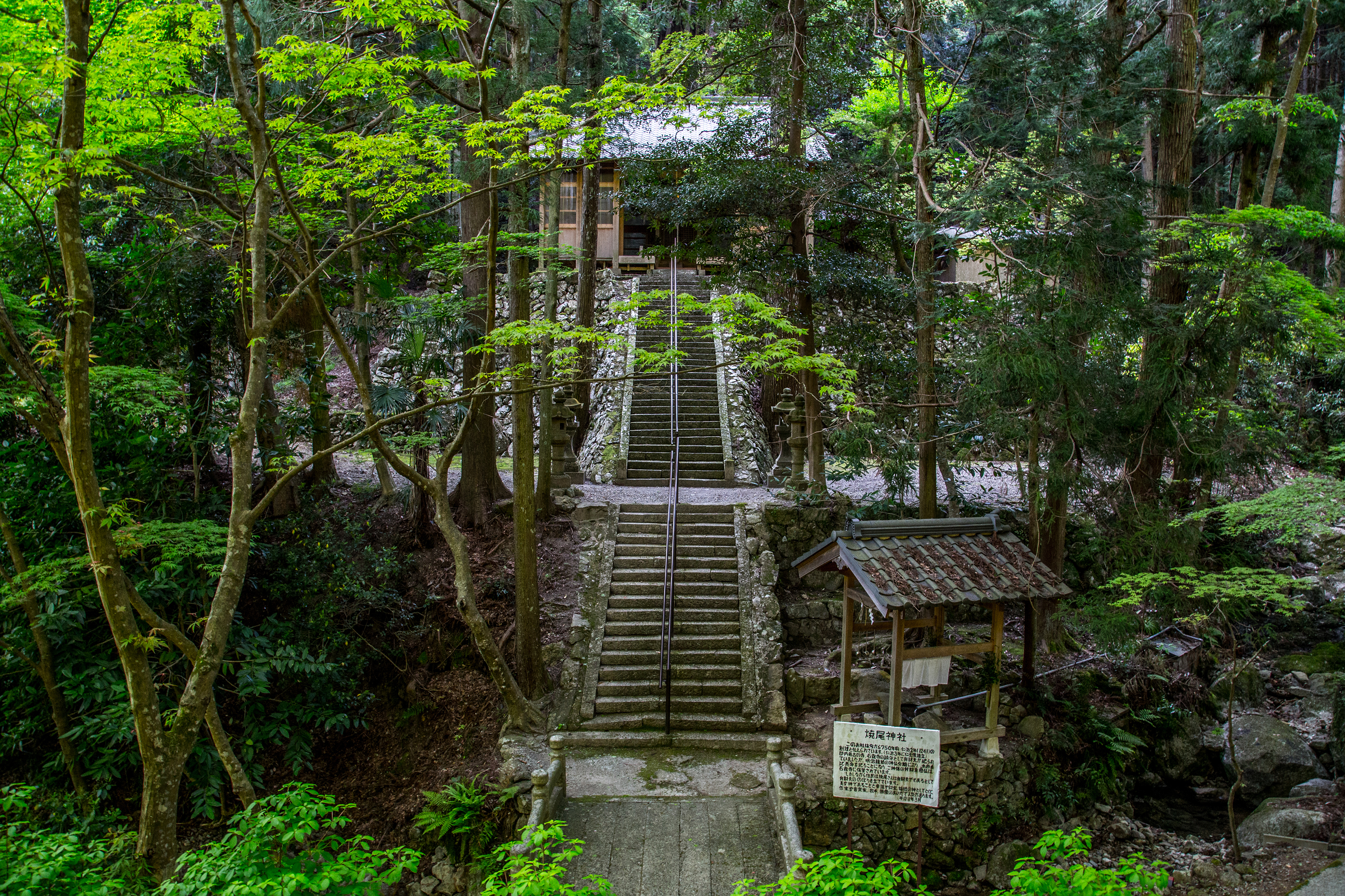 青紅葉の向こうに見える焼尾神社_石龕寺
