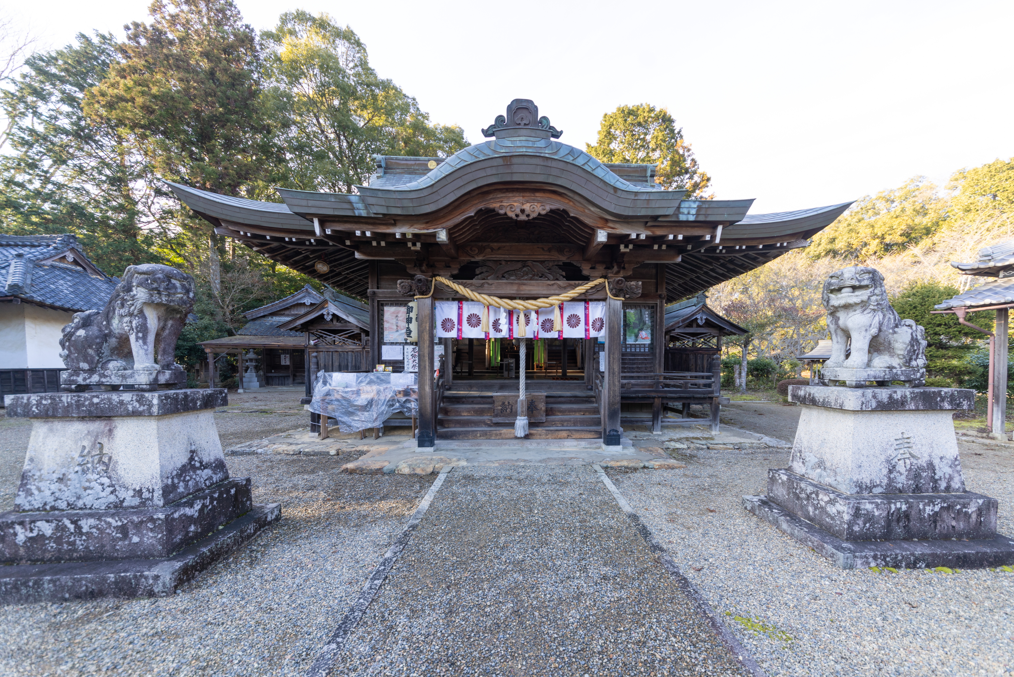 狛犬と本殿_阿陀岡神社