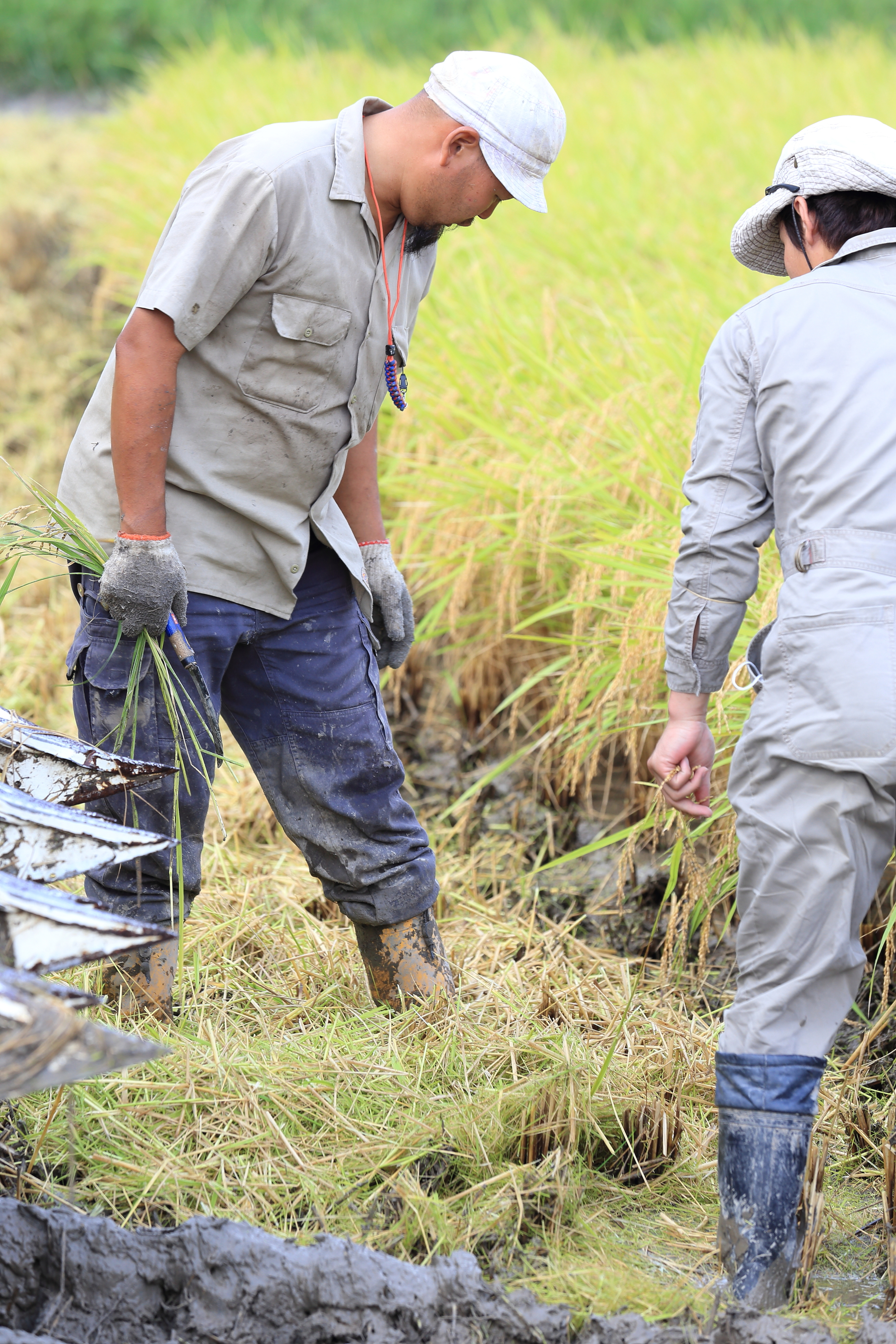稲刈りをする男たち_丹波たぶち農場