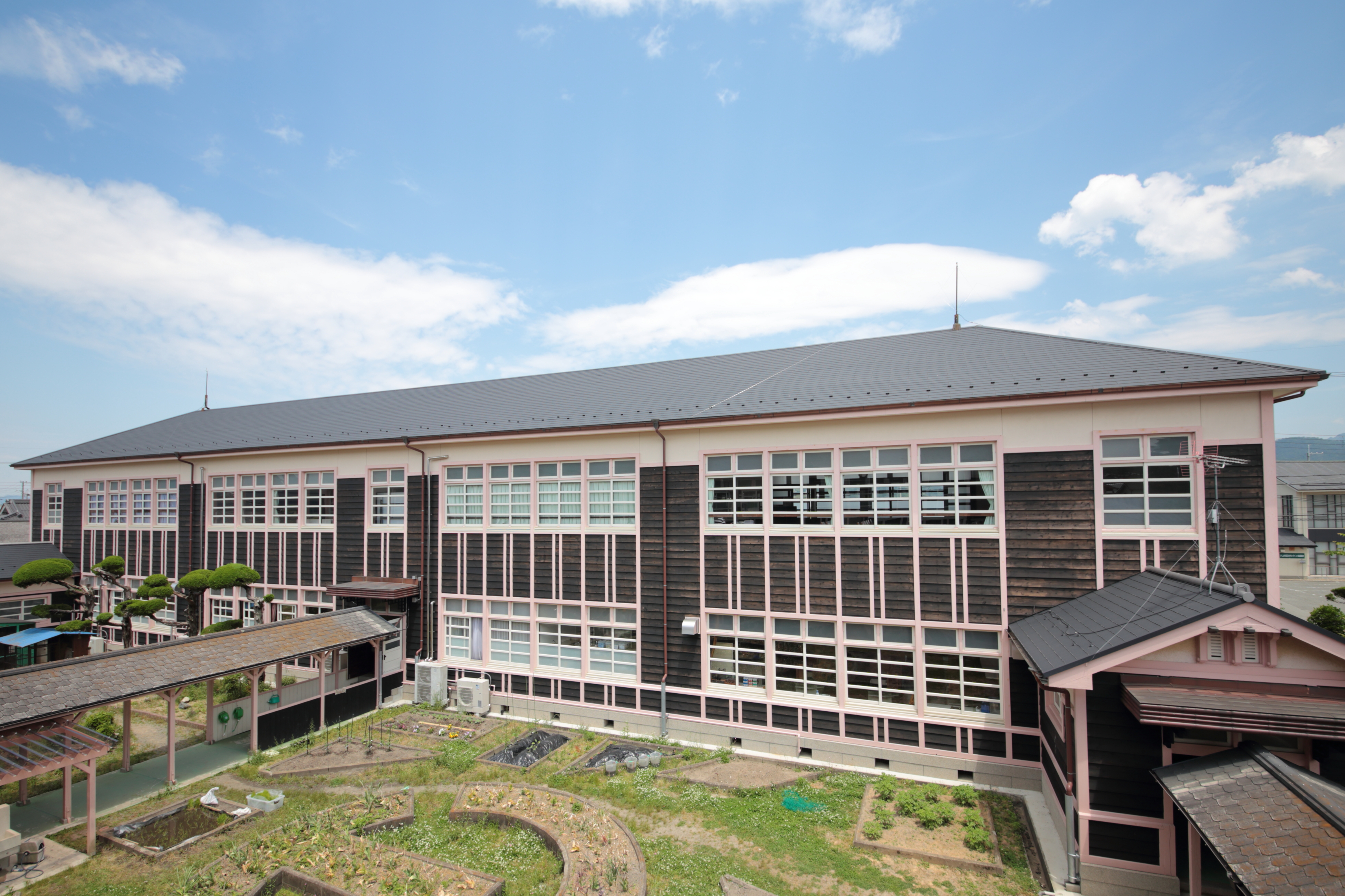 二階の窓から見る校舎_八上小学校