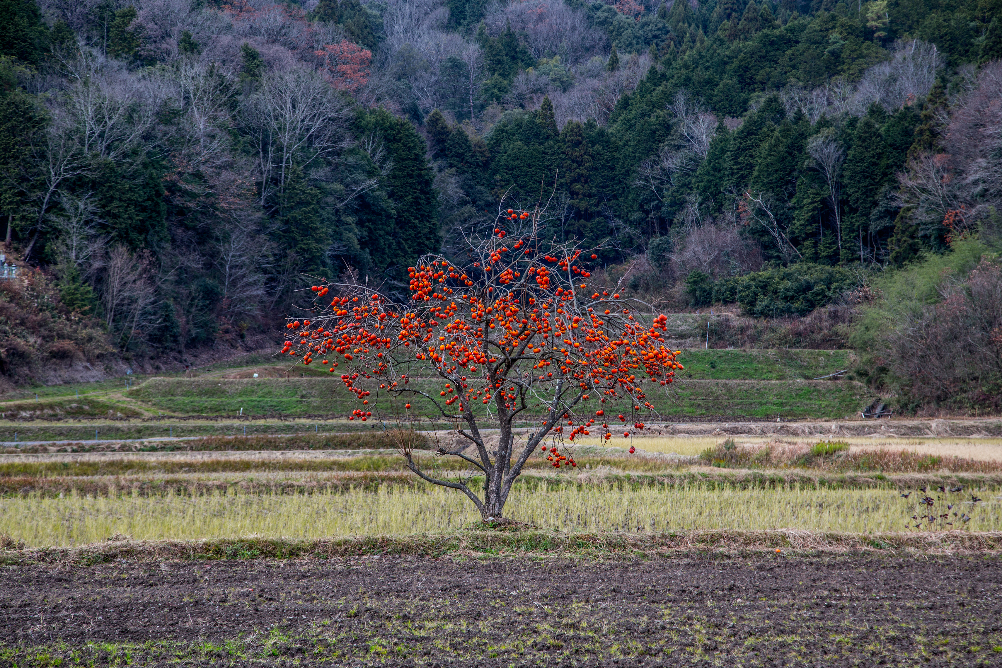 紅い実がなった柿の木_丹波篠山市真南条上