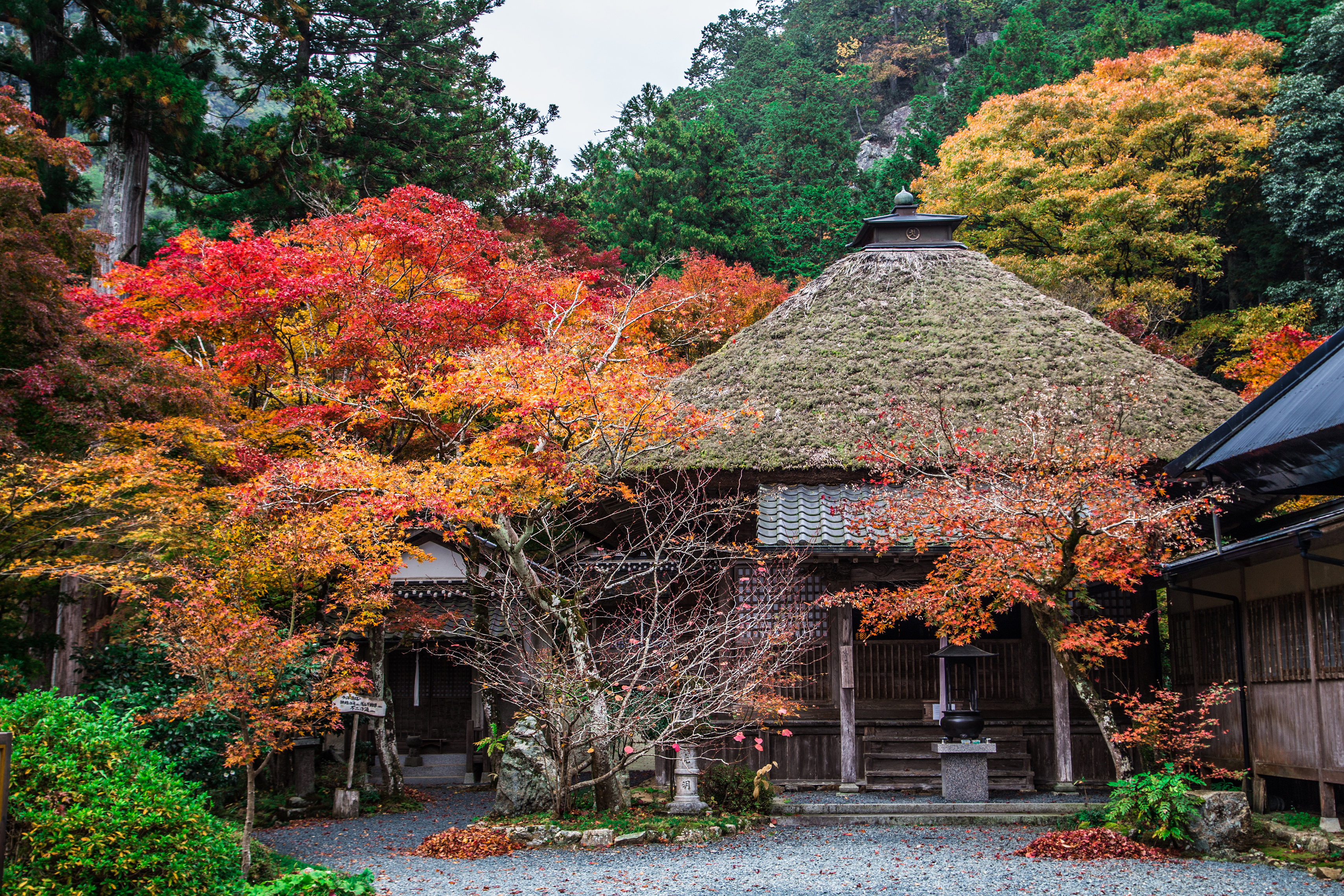 本堂と紅葉_岩瀧寺