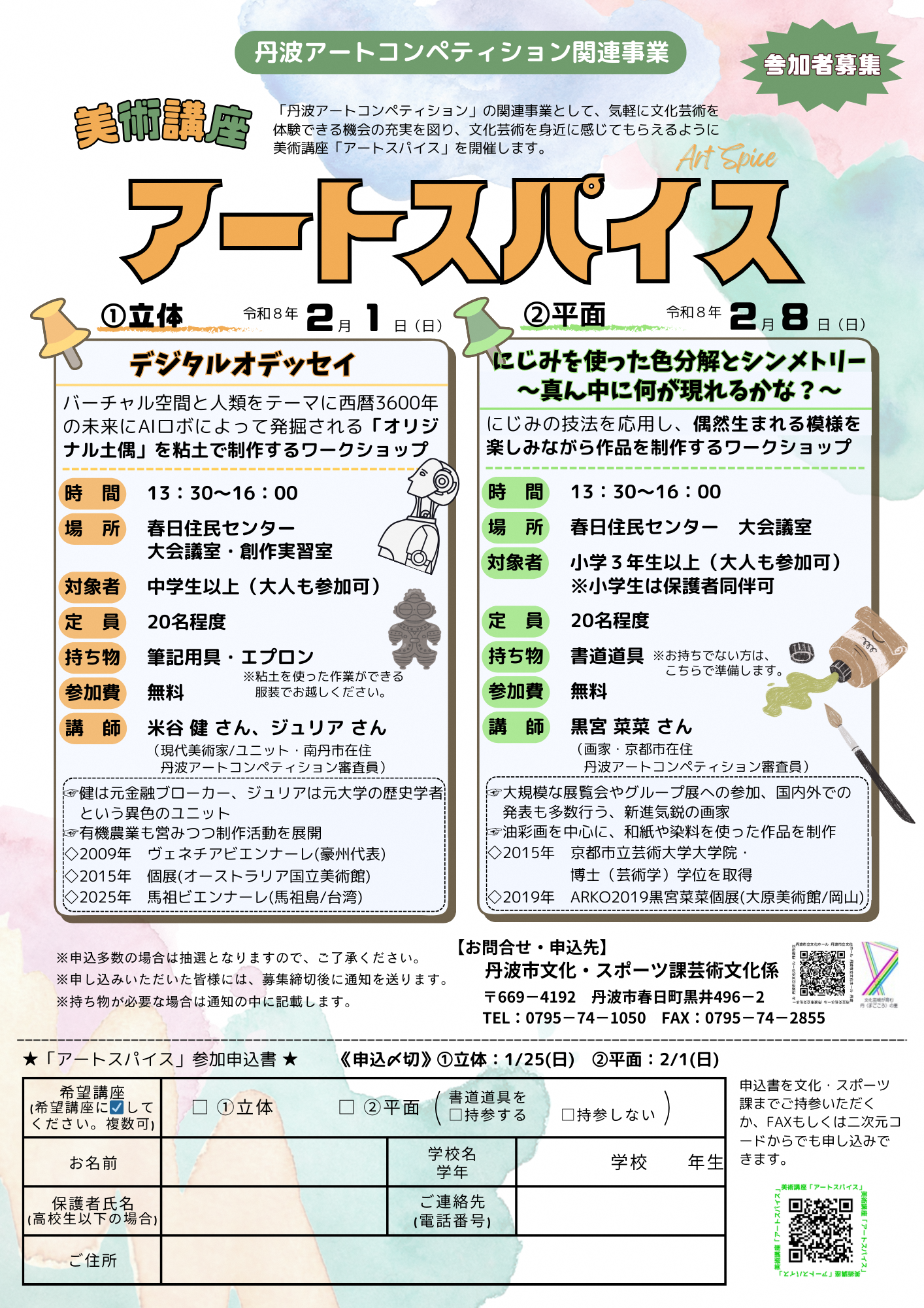 美術講座「アートスパイス」 ②平面講座『にじみを使った色分解とシンメトリー ~真ん中に何が現れるかな?~』
